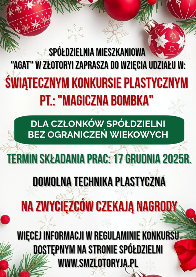 Zapraszamy do udziału Członków Spółdzielni w świątecznym konkursie plastycznym pt.: ” Magiczna Bombka”